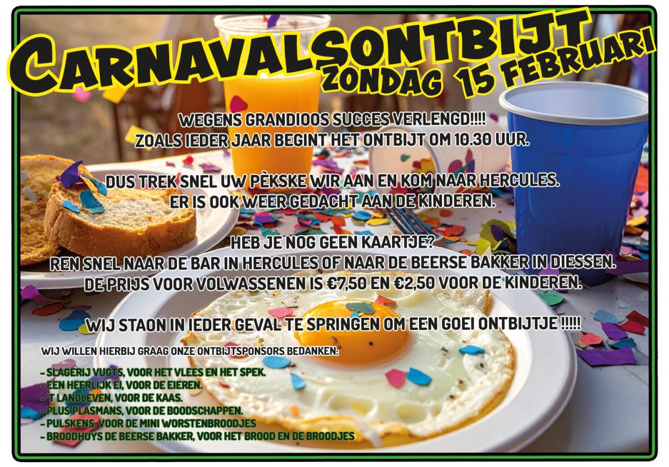 Jaja! Ook dit jaar hebben we op de carnavalszondag (15 februari) weer een heerlijk ontbijt voor jullie klaar staan!