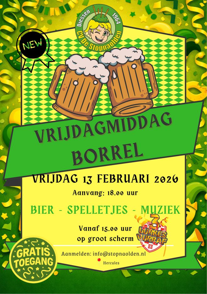 Vrijdag 13 februari is het zover! Wij organiseren een gezellige vrijdagmiddagborrel waar je bij móét zijn